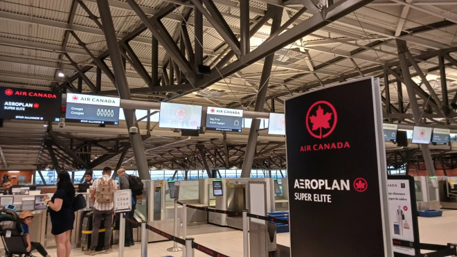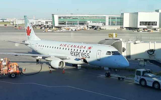 一名旅客在多伦多皮尔逊国际机场,背景为加拿大航空航班。摄影:Peter J. Thompson/National Post