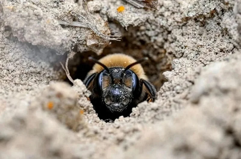 为系统评估蜂群规模与生境内物种组成,研究团队设计了“出巢陷阱”监测方法。他们在不足一平方米的地面上方搭建网状小型笼罩装置,将从地下钻出的昆虫引导至收集容器中。丹福斯解释说,这种方法能够“一次性捕获从地表某一小块区域中钻出的整个动物群落”。2023 年 3 月 30 日至 5 月 16 日期间,团队共布设了 10 个出巢陷阱,累计采集到 3251 只昆虫,涵盖蜜蜂、蝇类和甲虫等 16 个物种,其中规则地蜂为绝对优势种。