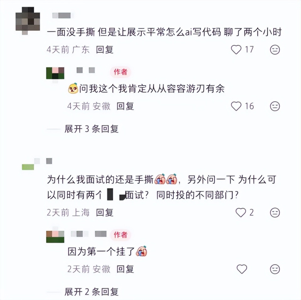 平时老师都让用AI,但面试的时候不一定让用,就相当于高考突然让你现推勾股定理,其中饱含的泪水只有自己知道。
