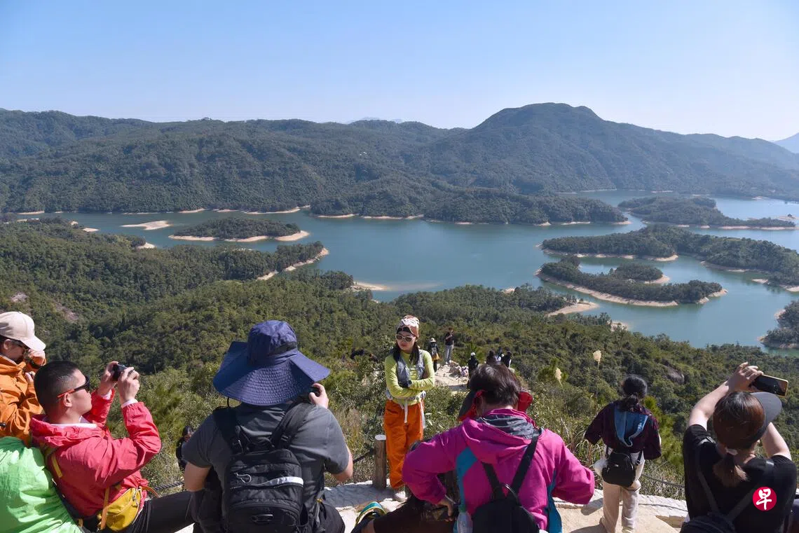 一个多星期后的五一黄金周假期,估计会有数十万甚至逾百万大陆民众到香港旅游。图为1月11日,中国大陆游客在香港大榄涌水塘游览。 (新华社)