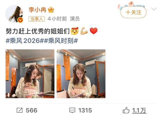 同日,李小冉在微博发布排练室工作照,配文"努力赶上优秀的姐姐们",关联节目话题#乘风2026#,IP地址显示"湖南",侧面证实其仍在长沙备战。此前(4月18日),她还晒出写满歌词的手臂,自嘲"我的胳膊你忍忍",表明积极备赛态度。