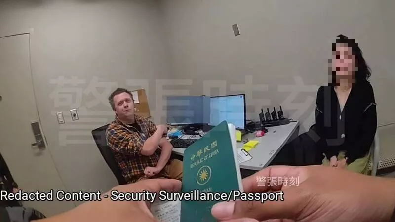 警察到场后,女子拿出一本台湾护照,表示自己是游客。(取自YouTube频道警张时刻)