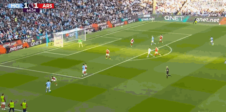 第18分钟,光速扳平!多纳鲁马超巨失误,哈弗茨将球挡进球门,阿森纳1-1曼城!