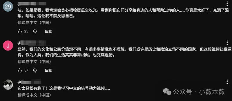 有人则感受到了中国社会的温情一面,还是小薇常说的那句话,各美其美天下大同。
