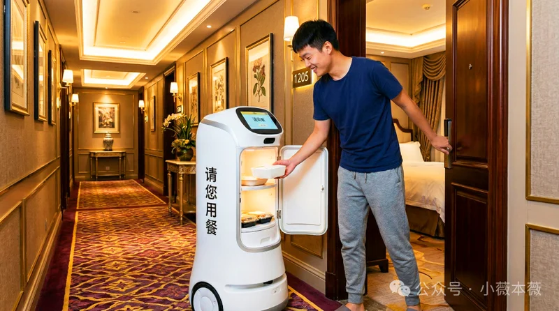 ▲图注:机器人送餐