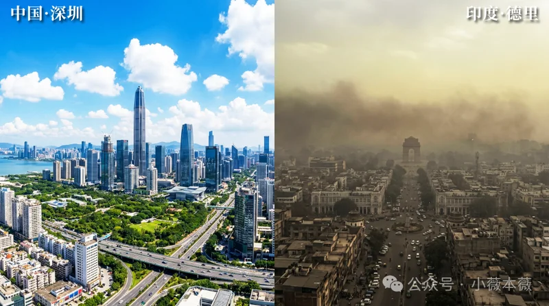 ▲图注:中国印度空气对比