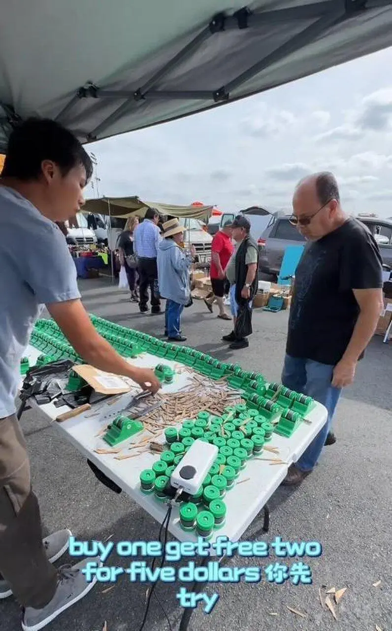 在跳蚤市场签下每月850美元固定摊位合约后,他将磨刀器统一定价为4.99美元,开摊首日即售罄,补货三次仍供不应求。