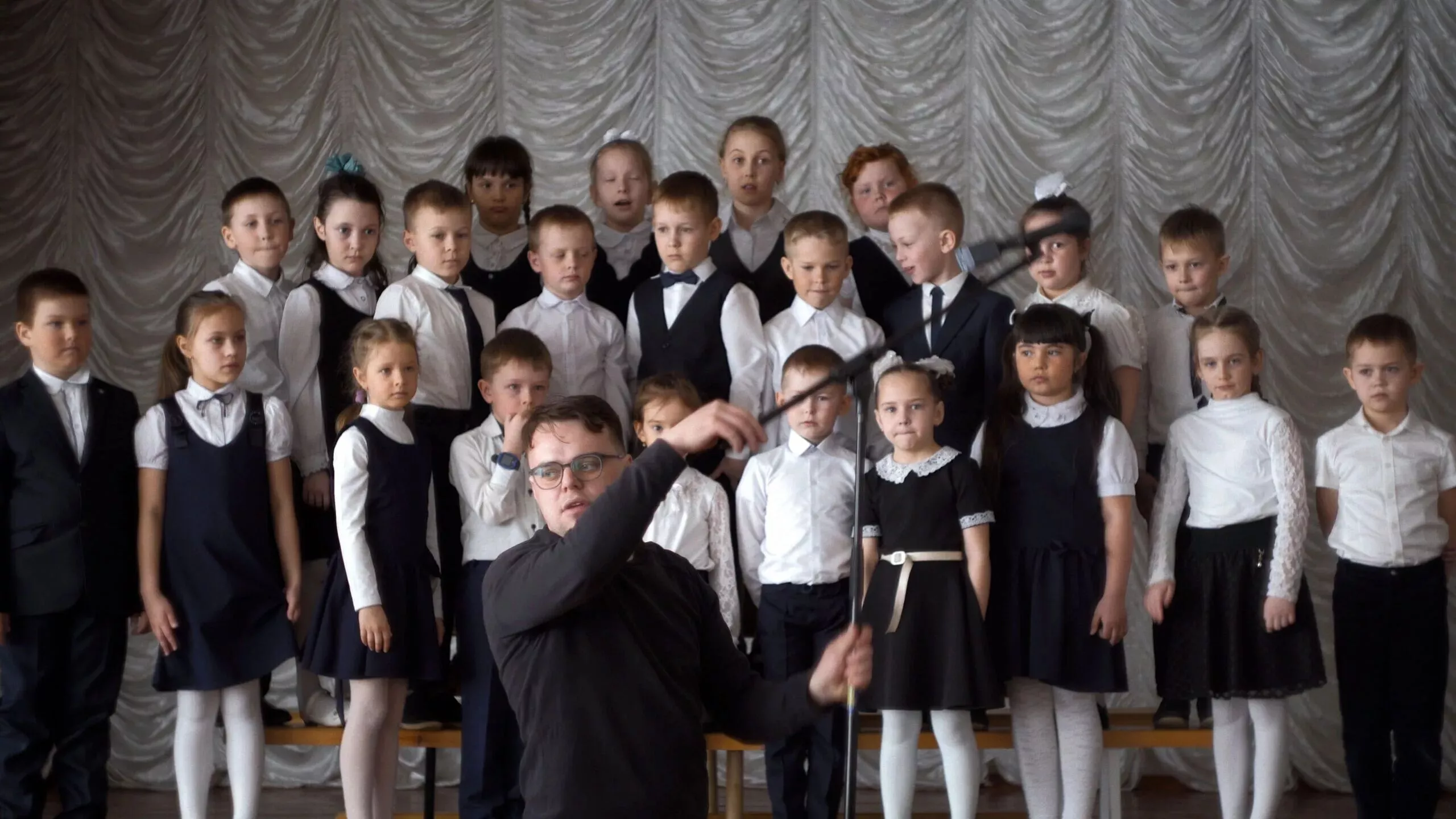帕沙·塔兰金在指挥学校的合唱团。图:BBC, Pavel Talankin