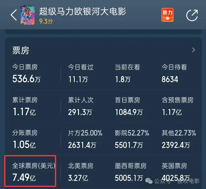 其中最让人感慨的就是《马力欧银河大电影》,这部电影在全世界的总票房已经超过7.49亿美元,换成人民币大概51亿,可在国内的票房却只有1亿,差距大得让人不敢相信。
