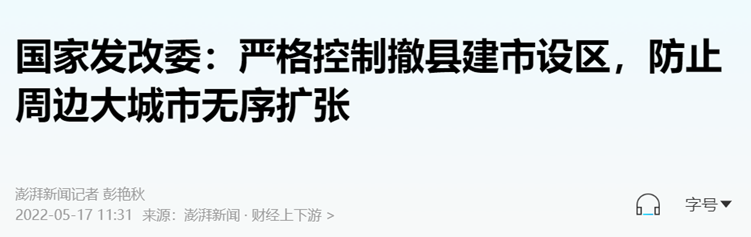 但2022年以来,随着严控省会城市规模无序扩张,严控撤县建市设区,城市扩容戛然而止。