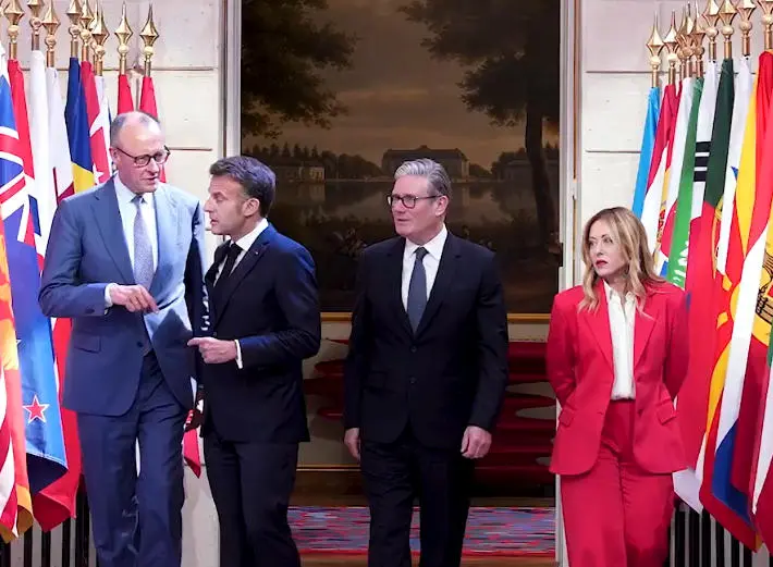 17日,默茨、马克龙、斯塔默和梅洛尼齐聚巴黎 视频截图