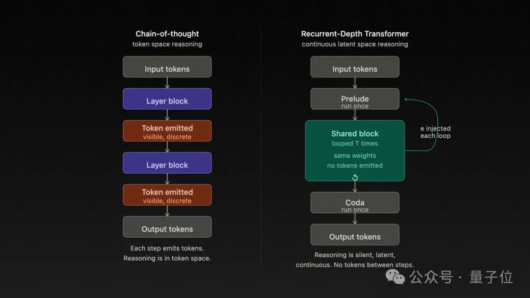 这和Chain-of-Thought完全不同。CoT是“想一步,写一步,再想一步,再写一步”,中间token全部暴露给人类阅读。