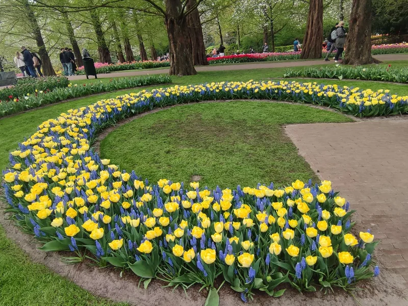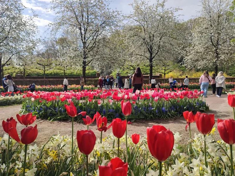 目的地是库肯霍夫公园 Keukenhof,它位于阿姆斯特丹近郊利瑟小镇Lisse。这里被称为世界上最大的郁金香公园。停车场很大,人也很多,各种语言混在一起,但一切都显得井然有序。