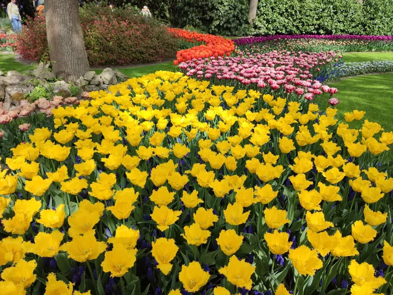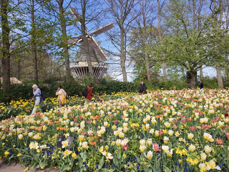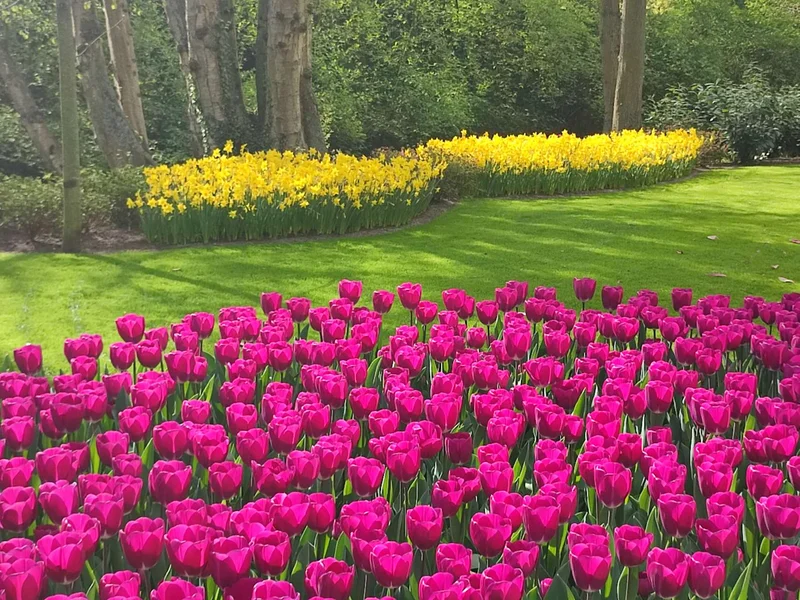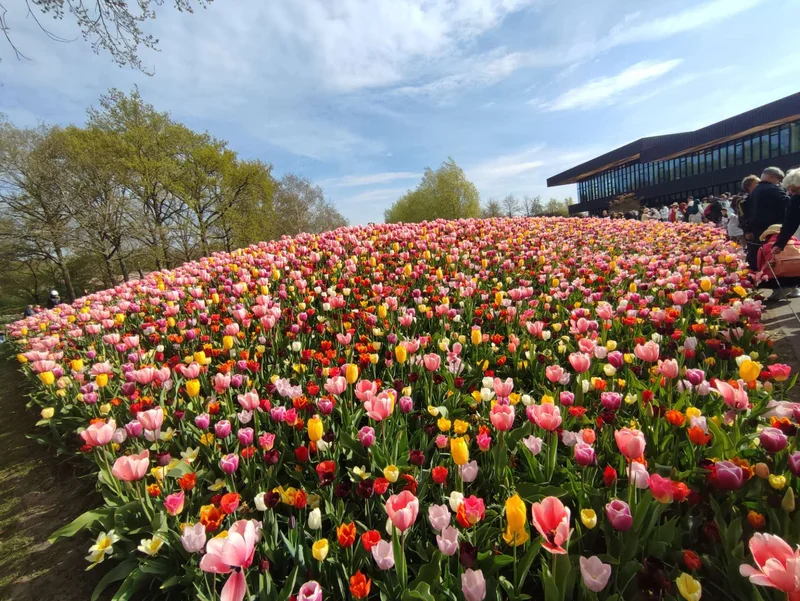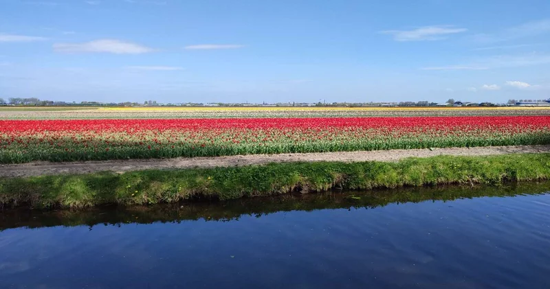 进入荷兰境内,春天西欧的平原还带着一点凉意,风很干净,天很高,难得晴朗。越靠近阿姆斯特丹,路边的颜色就开始变得不一样——大片大片的花田,花朵在风中摇曳,像被人铺开的五线谱,一条红,一条黄,一条紫……。荷兰人总说郁金香会唱歌,此刻才知是风在替它们演奏。
