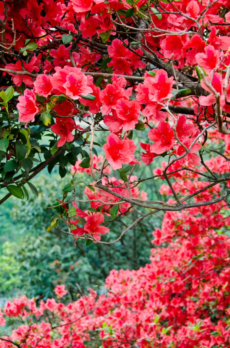 群山不高,土质偏硬,颜色是发红的,平常不是很起眼的样子。但一到春天,杜鹃花开了,一座座山像忽然被点燃了一样。山上的杜鹃花几乎是“失控”的生长和开放。没有人规划它们,也没有路径。它们自己长,长到哪里算哪里。颜色也不讲究搭配,往往是一整片突然红起来,那种“红”,是漫出来的,对!就是山花烂漫!
