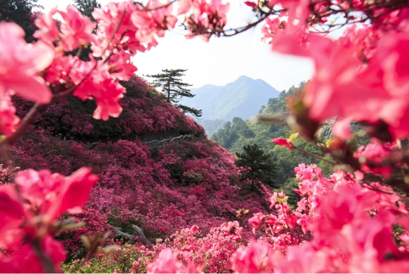 也是这个季节,不是郁金香,而是杜鹃花。我们那儿叫它“映山红”。