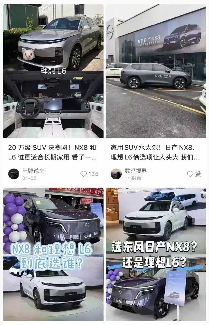 社交平台上突然涌现出大量日产NX8对阵理想i6、L6的“买车二选一”的对比帖