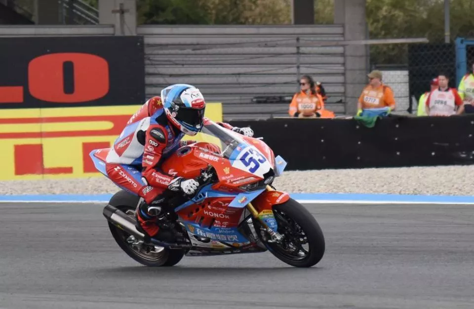 4月18日,“张雪机车”车队法国车手瓦伦丁·德比斯在比赛中。2026WSBK荷兰站WorldSSP组别正赛第一回合,德比斯以第三名完赛,但因罚分最终排名第四;19日进行的第二回合,德比斯获得第七名(图:新华社)
