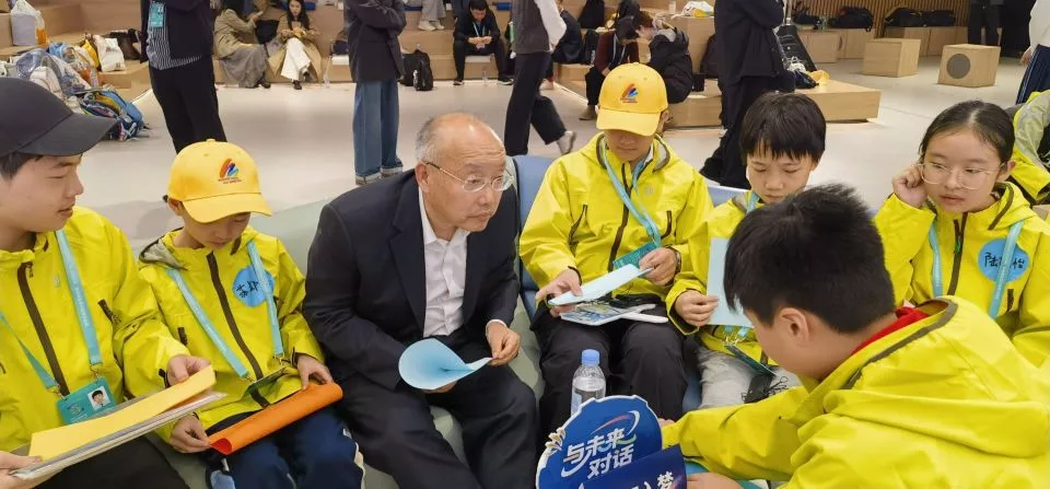 2025年,周国辉在云栖大会期间同来自中西部的小学生观察团交流 (图:受访者提供)