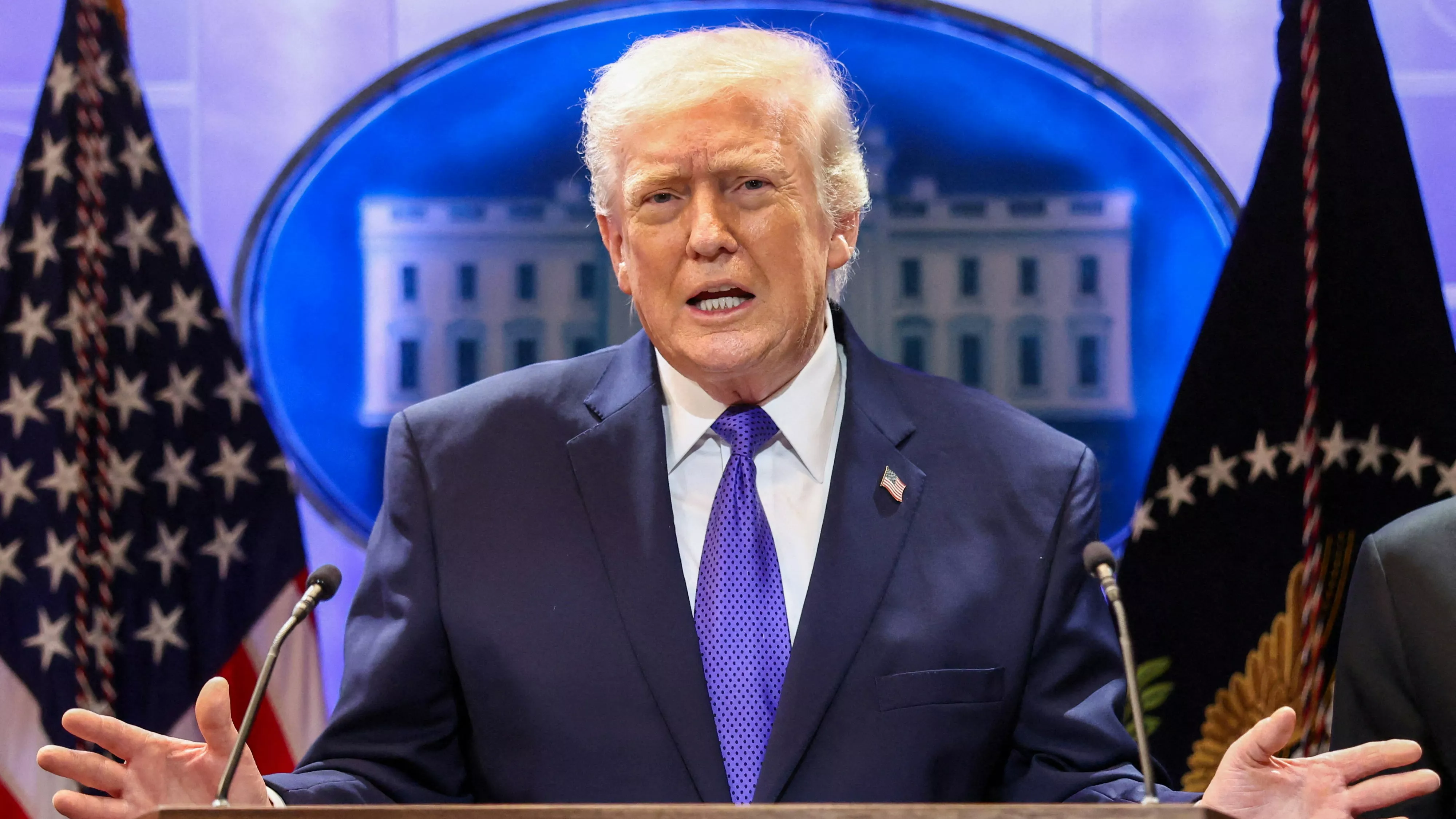 2026年2月20日,美国华盛顿,总统川普(Donald Trump)在白宫举行的记者会上发表讲话。此前,最高法院裁定川普在征收关税时超越了他的权限。(Reuters)