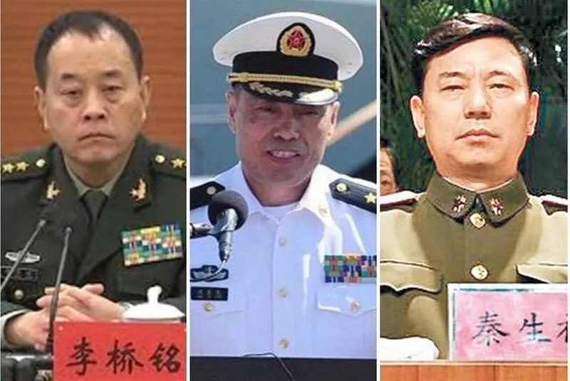 解放军前陆军司令员李桥铭(左起)、前海军司令员沈金龙、前海军政委秦生祥,均在此次被罢免上将名单。(取自微博)