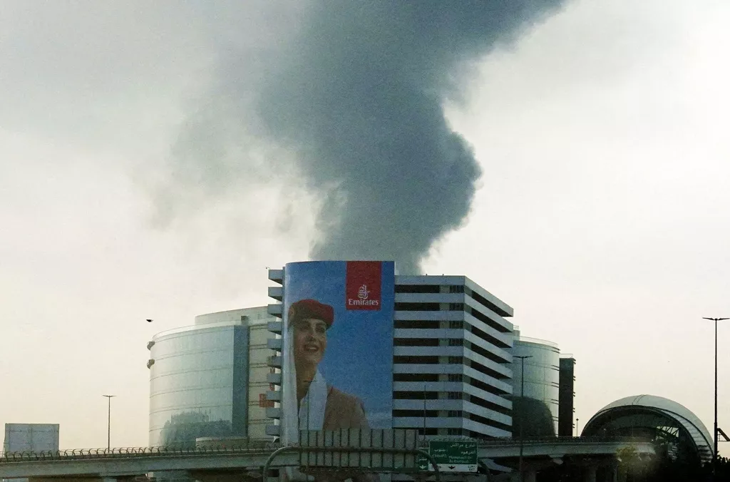 阿拉伯联合大公国担忧伊朗战事长期化,传出近期向美国提议“货币互换机制”,在未来需要时获得美元支撑。画面为3月16日迪拜机场附近燃料库遭遇伊朗无人机攻击。(路透)