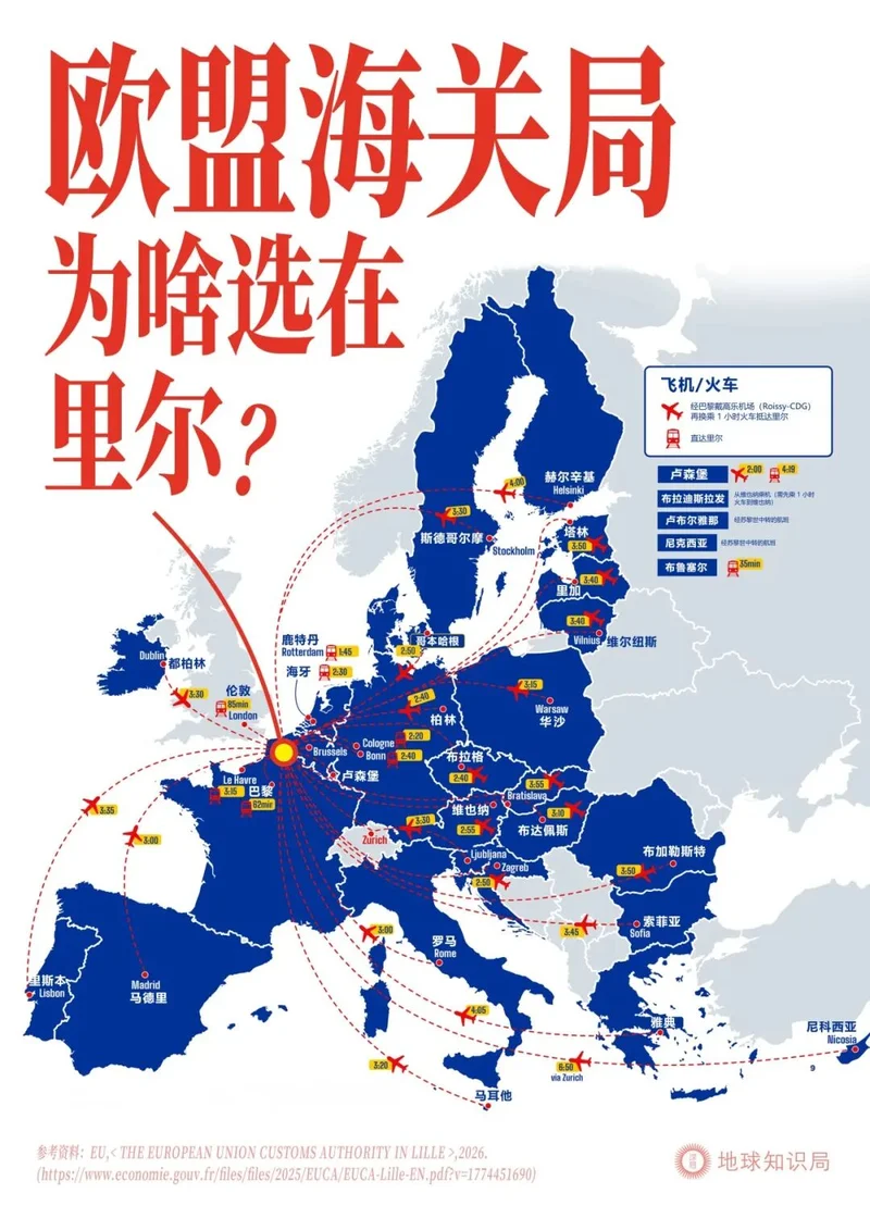 到2026年3月,欧洲海关局的选址尘埃落定,不在布鲁塞尔、不在斯特拉斯堡,而是放在法国里尔。
