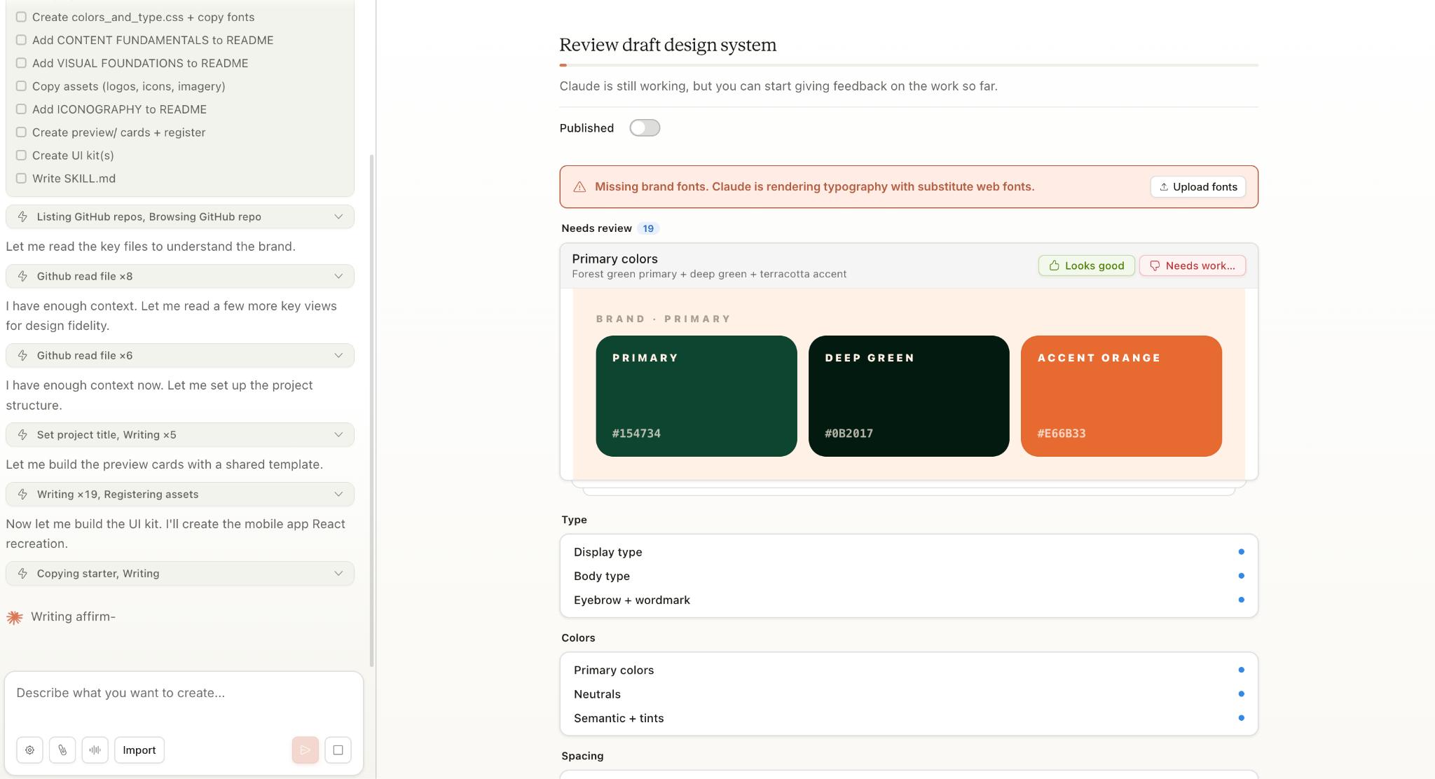 Claude Design中生成并预览设计的界面(图源:Anthropic)