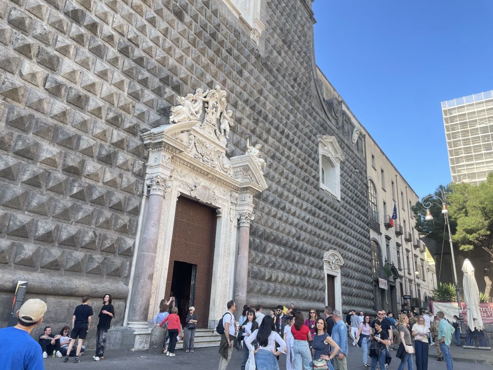 花钱后能立马见到大师杰作,很满意了,有的地方想花钱都办不到。圣塞维罗礼拜堂Cappella Sansevero,有一件震撼的巴洛克雕塑杰作:《蒙面基督》,大理石雕成透明薄纱般的效果,是此地第一网红艺术品。我们就此走去一看排长队,正打算跟着队排队,才搞清楚他们是有票排队,据说参观需提前两周预订票。我功课没做好,只有放弃。