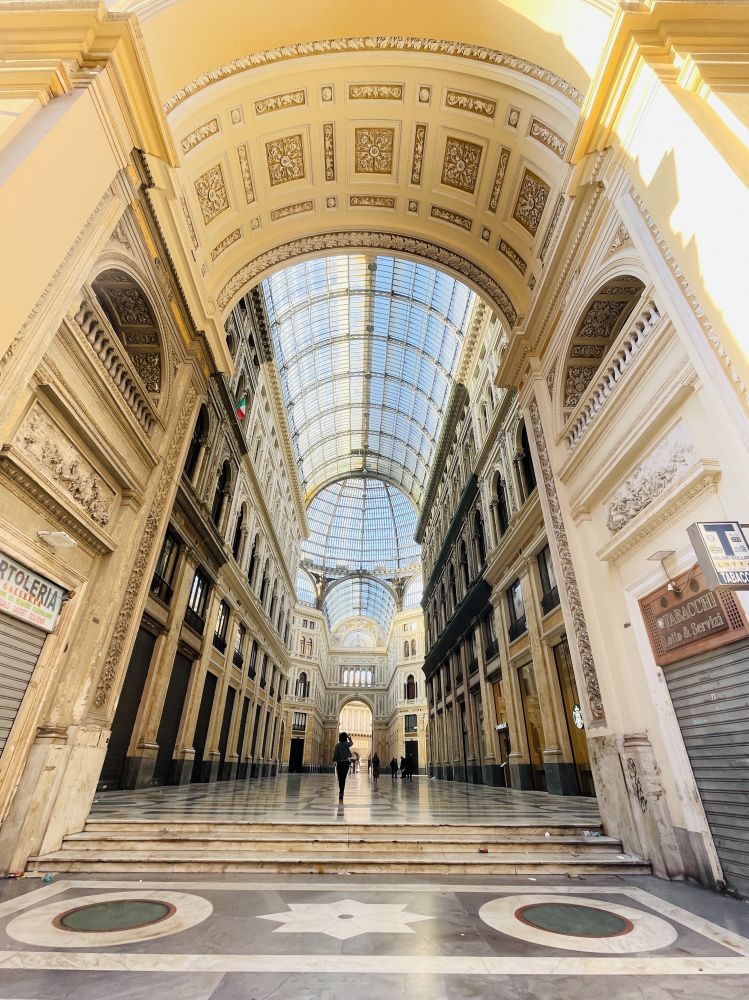 旅店对面是著名的拱廊Galleria Umberto I,非常像米兰大教堂傍边的伊曼纽尔二世拱廊。下午人潮汹涌,我等一大早又去,乘空寂无人,照几张照片。
