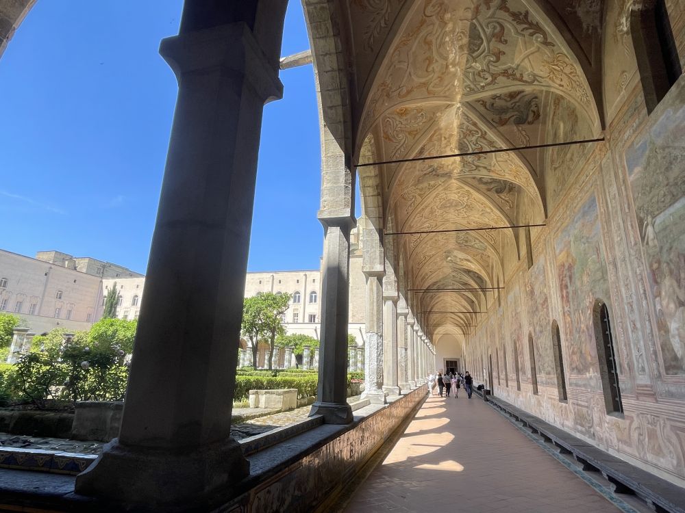 其中的圣嘉勒修道院Santa Chiara,有条著名的是彩色瓷砖回廊。马约利卡瓷砖柱子回廊,围绕院中柠檬树,是城市中最美的空间之一。