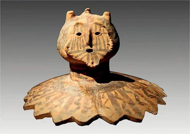 瑞典考古学家安特生在中国河南渑池县仰韶村获得的人头形彩陶器盖。图/艺术互动