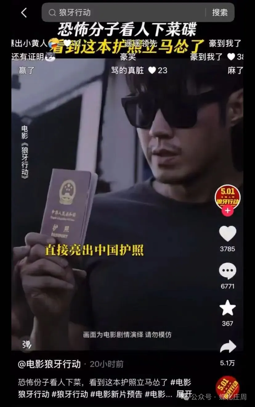 在电影里,中国护照几乎成了百试百灵的“护身符”,让穷凶极恶的非法武装立刻变脸成孙子。