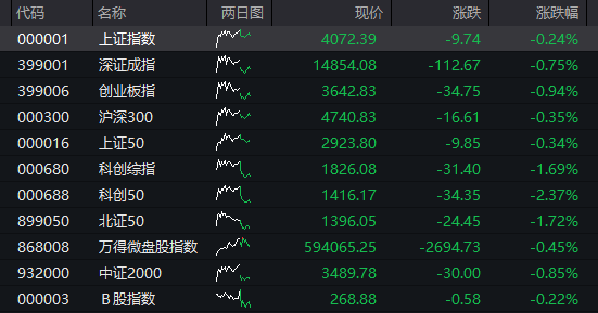 A股:截至发稿,沪指跌0.24%,深成指跌0.75%,创业板指跌0.94%。