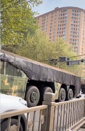 中国导弹进入居民区,演练还是常规操作?KUNLUN昆仑X号4/20/2026今天,中国河北省周州市街头,发现至少三辆新型东风-27高超音速武器导弹系统的中国移动发射器。 (视频截图) 这种规模的洲际导弹,跨入普通居民区,实属罕见,到底发生了什么? 00