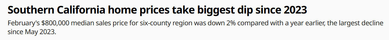 是的,这次价格下跌只是温和的调整。截至目前,南加州的中位价格较2025年6月的83.05万美元峰值仍仅低4%。