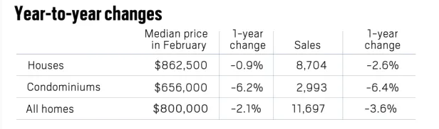 2月房屋成交量比去年同期降低4%,比22年平均水平低25%。