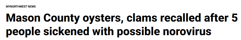 华盛顿州卫生局(DOH)近日发出紧急召回令:来自Mason County、由Gomez Shellfish, LLC采捞的牡蛎(生蚝)和蛤蜊,疑似受到诺如病毒污染,已被强制召回。这批贝类水产曾发货至华盛顿州、俄勒冈州和加州。