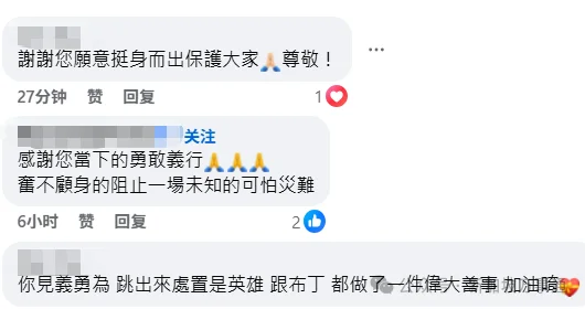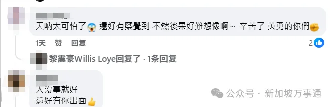 评论区不少中国网友都在感谢黎震豪的见义勇为!