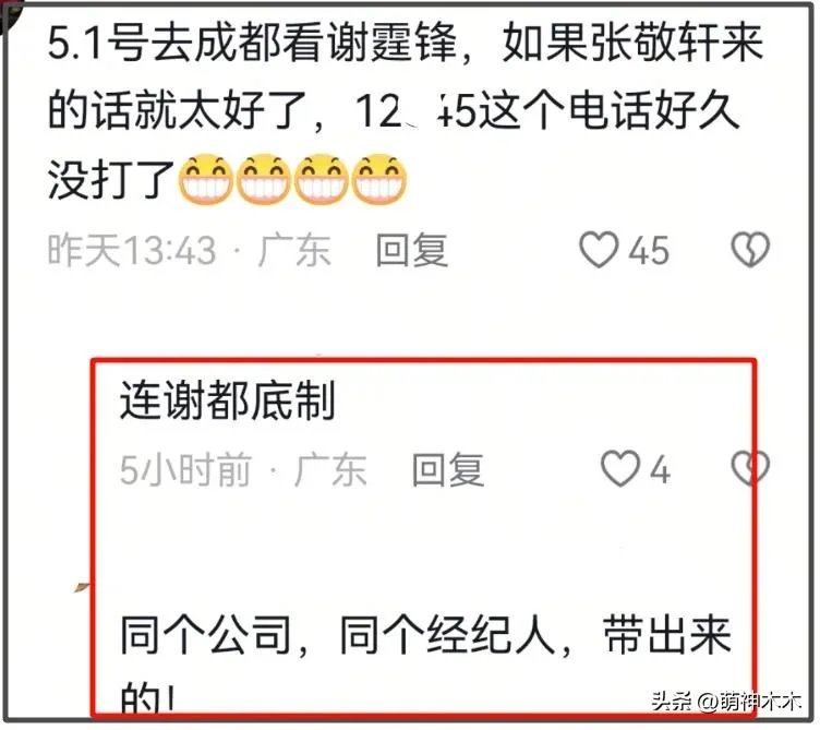 谢霆锋也被连累,演唱会宣传的评论区也出现网友科普,他是张敬轩的同门。