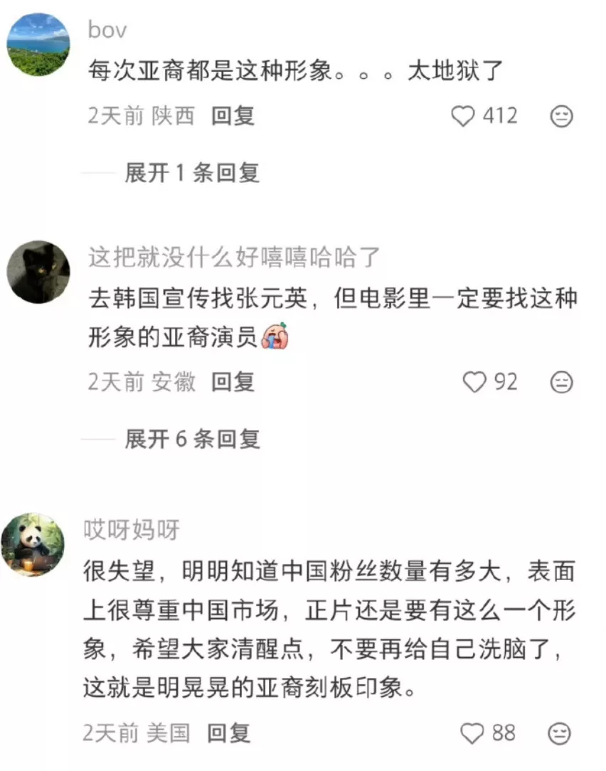 很失望,明明知道中国粉丝数量有多大,就是亚裔刻板印象。