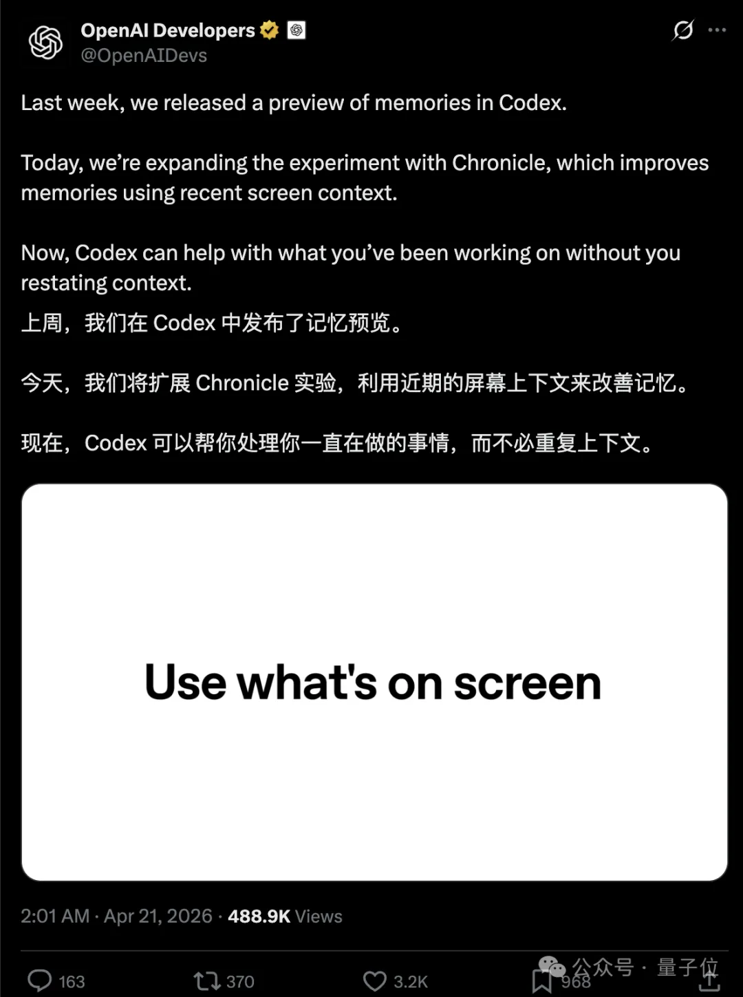 刚刚,OpenAI给Codex上了一个新功能,Chronicle。