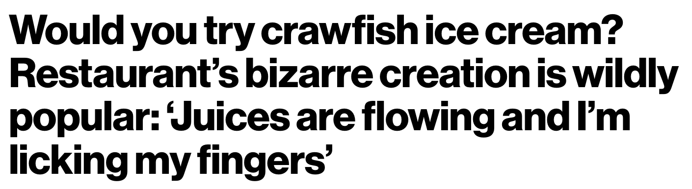 尽管这款冰淇淋看起来有些荒谬,但甜味与海鲜鲜香的意外碰撞,似乎已经彻底征服了休斯顿人的味蕾。