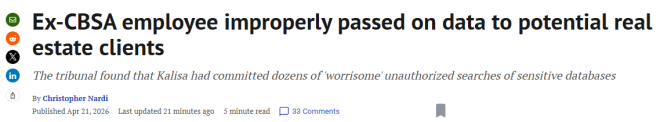 据4 月 21 日报道,至少 13 年间,一名加拿大边境服务局(CBSA)员工曾多次违规查阅政府数据库,并向部分移民申请人泄露机密信息,其中部分人后来成为其地产副业的客户。