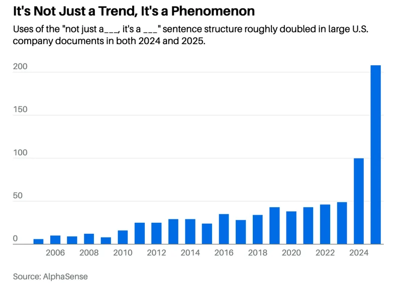 美国公司公文中,使用“not just X, it's Y”句式的频率正在快速上升。这不只是一个趋势,更是一个现象。图片来源:AlphaSense