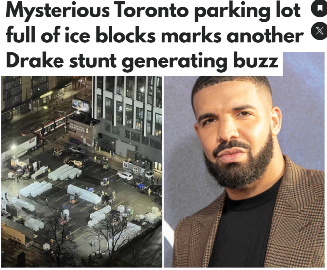 在Dundas和Bond街口,一座6米高的巨型冰雕横空出世,吸引数百人蜂拥围观——这不是普通的街头艺术,而是说唱巨星 Drake 为新专辑准备的一次“硬核预告”。