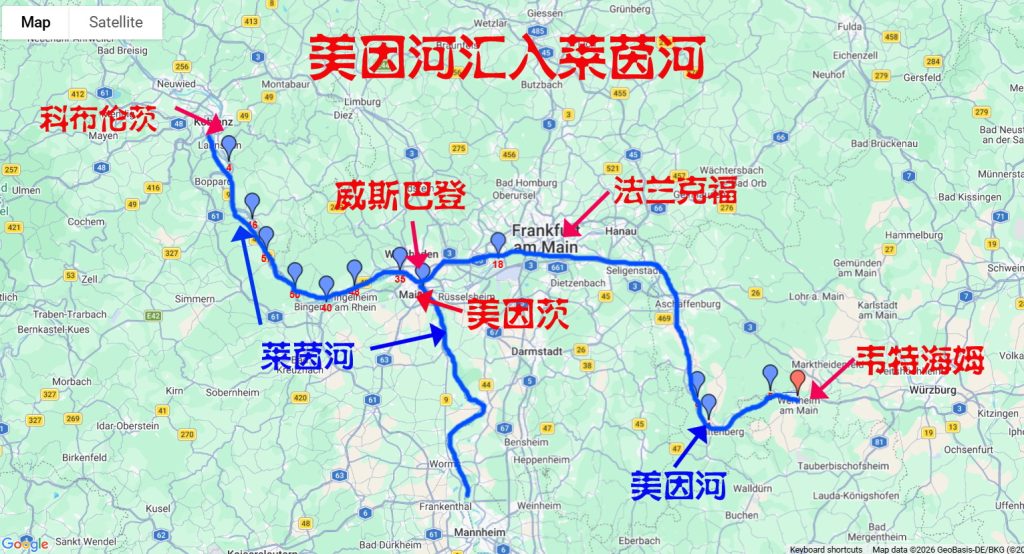 随着航程推进,美因河的旅途渐渐走向高潮。在美因茨(Mainz)附近,这条自东向西流淌525公里的河流,终于汇入浩荡北去的莱茵河(Rhine),对岸便是温泉之城威斯巴登(Wiesbaden)。这里不仅是地理意义上的交汇点,更是历史与文明的节点。早在公元前38年,罗马人便在此建立军事据点,驻军上万,以抵御周边部族。随着罗马帝国的衰落,此地又成为法兰克人的政治中心。中世纪时,这里被誉为“黄金美因茨”,成为继罗马之后欧洲最重要的宗教与文化重镇之一。