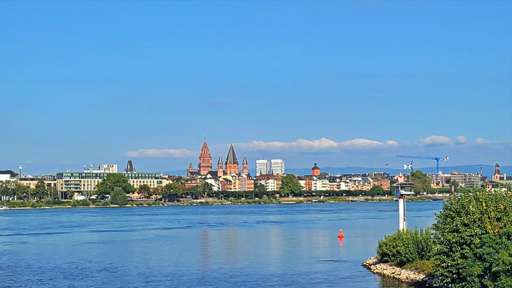莱茵河畔的美因茨市中心,展现出一幅厚重而优雅的城市天际线。这座拥有两千多年的历史的城市,最初源自罗马时期的军事要塞。城市上空最醒目的,是那座红棕色的美因茨大教堂。