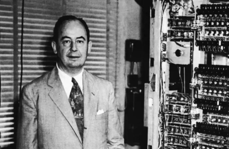 真正的约翰·冯·诺依曼不用多介绍,二十世纪最负盛名的数学家、博弈论奠基人、计算机科学先驱,早于1957年逝世。