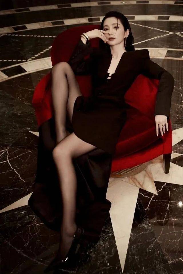 换上黑色丝袜搭配上黑色西服的李冰冰,彻底找回了自己御姐的标签,微微下垂的发丝更多了一份风韵犹存,
